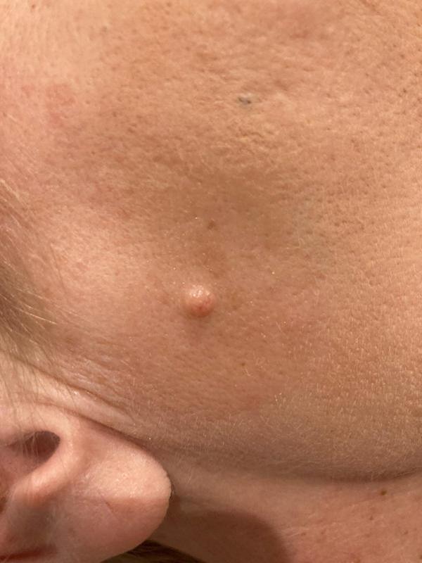 Benign cysts presenting as hard white bumps caused by keratin trapped in the epidermis. Typically found on the face, particularly in individuals with dry skin. They can vary in size and may be linked to incorrect skincare products, slow desquamation, or stress.